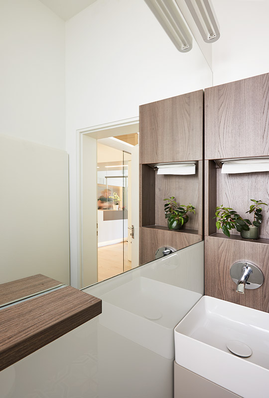 Die 250 Quadratmeter große historisch, gewachsene Bamberger Praxis mit klassisch handwerklich geprägter Zahnmedizin wurde von Kamleitner Architekten gemeinsam mit dem Zahnarzt Dr. Steffen Remus sowohl in der medizinischen und stilistischen Grundphilosophie überarbeitet und neu entwickelt.