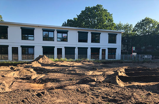 Das mehrfunktionale Gebäude am Dallbregen wurde rechtzeitig fertiggestellt – trotz Corona. Hier gibt es nun Raum für eine Senioren-Wohngruppe, einen Kindergarten und zweiundzwanzig soziale Wohnungen. Wir sind stolz und danken dem tollen Bauteam, dass in diesen schwierigen Zeiten wirklich alles getan hat, um im Zeitplan und bei guter Laune zu bleiben!
