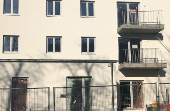 Ein letzter Meilenstein vor der Fertigstellung wurde erreicht: die Fassade ist abgerüstet. Jetzt fehlt noch der Innenausbau und die Endmontage, dann sind 22 Wohnungen und die barrierefreie Wohngruppe bis Juni 2020 fertig. Vielen Dank an das tolle Bauteam, das in der Corona-Zeit mit uns gemeinsam dieses Projekt fertigstellt!
