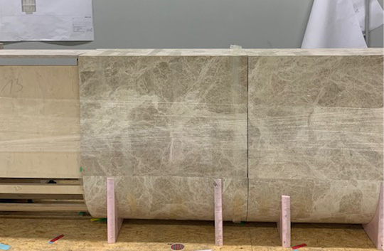 Um auch die restlichen 70% Mieter für den Elbtower zu gewinnen, gestalten und planen wir das Innenleben der Marketingsuite für ein internationales Immobilien- und Handelsunternehmen in Hamburg. Das Herzstück bildet der Tresen aus hochwertigem Naturstein (KMD, Gotha) mit einer komplexen Unterkonstruktion (Møbelwerft, HH).