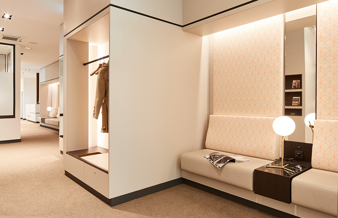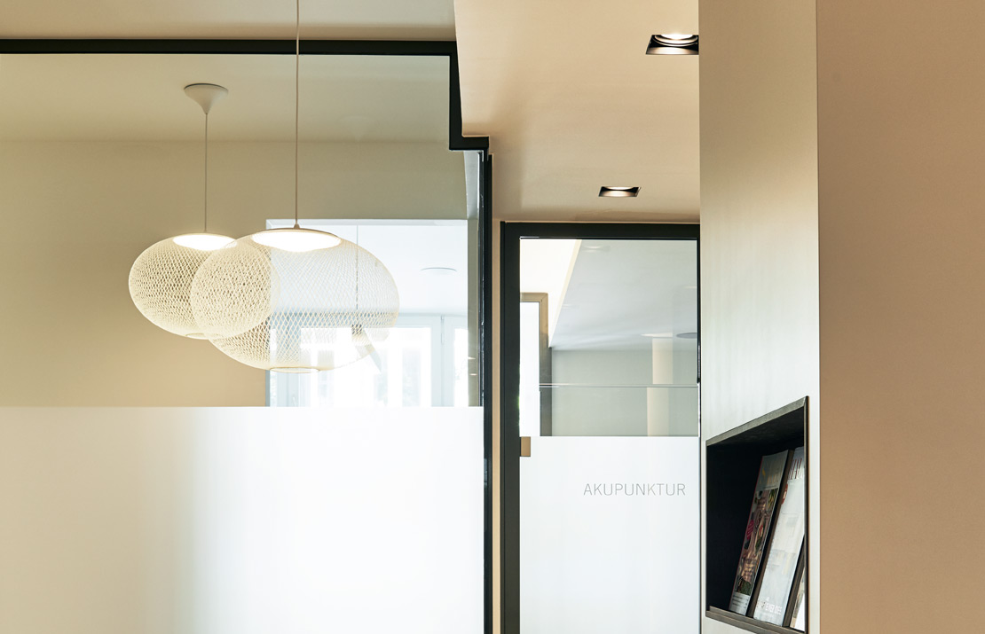 Im Mittelpunkt der Praxis steht die Anmeldung, die den Kunden offen empfangen und klar in die einzelnen Zonen geleiten soll.